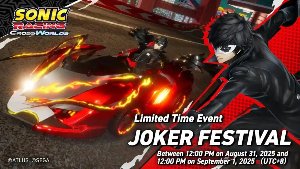 Η SEGA επιβεβαίωσε ότι οι φίλοι των racing games θα έχουν την ευκαιρία να αγωνιστούν ως Joker από το Persona 5 στο επερχόμενο open network test του Sonic Racing: CrossWorlds. Ωστόσο, η δυνατότητα χρήσης του συγκεκριμένου χαρακτήρα θα είναι διαθέσιμη μόνο για 24 ώρες, από τις 31 Αυγούστου έως την 1η Σεπτεμβρίου κατά τη διάρκεια του event.