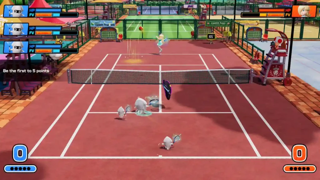 Αναφορικά με την πλοκή, θα έλεγα ότι θα ήταν πιο αστεία αν υπήρχαν voiceover. Ξέρω ότι η Nintendo μάς έχει συνηθίσει σε απλούς ήχους και γρυλίσματα, αλλά όταν υπάρχει μια όμορφη σκηνοθεσία σε ένα cutscene, οι μουγγοί χαρακτήρες δεν προσφέρουν την επιθυμητή σύνδεση με τον παίκτη και μάλιστα αφαιρούν από τη συνολική εμπειρία. Πέραν όμως από αυτό, το Adventure mode είναι μικρό σε διάρκεια, αποτελούμενο επί της ουσίας από μικρά μίνι παιχνίδια που κάποιες φορές δεν έχουν καθόλου σχέση με το tennis και πολύ ανούσιο κείμενο στους διαλόγους. Οπότε θεωρώ ότι δυστυχώς είναι ένα mode που θα το παίξετε για να ξεκλειδώσετε μυστικά και δε θα το ευχαριστηθείτε.